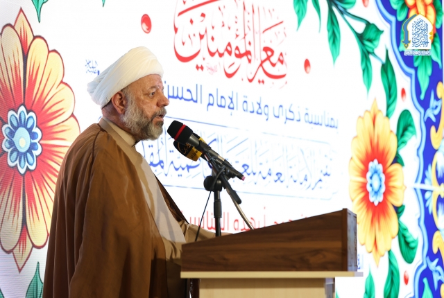 وأضاف: ينبغي أن نلتفت لشبابنا الذين يواجهون هجمة شرسة من قبل أعداء الإسلام، فالعدو يسخّر إمكاناته المادية والمعنوية والفنية لاستهدافهم، ولا بد لنا من استثمار هذه المناسبات إذ لا نحتفي بكلمات فقط بل يجب أن نحتفي بالمواقف وعليه أن نتخذ من إمامنا الحسن "عليه السلام" الأسوة الحسنة في طريقنا إلى الله "عز وجل" وتجديد دعوتنا بالتحلّي بالمنهج الحَسني القويم).
