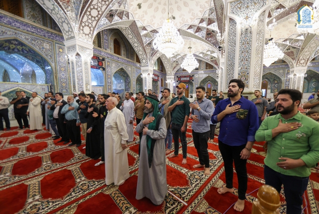 وشهد المجلس العزائي مشاركة الرادود علي عامر الكاظمي بقراءة مجموعة من المراثي التي جددت العهد والولاء لرمز من رموز التضحية والفداء، الذي صنع بدمه الطاهر مجد الرسالة المحمدية، وسط حضور الزائرين الذين توافدوا إلى حرم الإمامين الكاظمين الجوادين "عليهما السلام" لإحياء هذه المناسبة الأليمة.