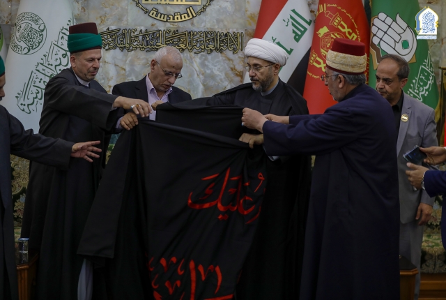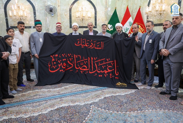 الأمانة العامة للعتبة الكاظمية المقدسة تُسلّم الراية المباركة للإمام جعفر الصادق "عليه السلام" إلى العتبات المقدسة