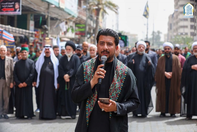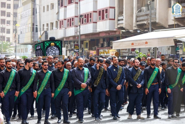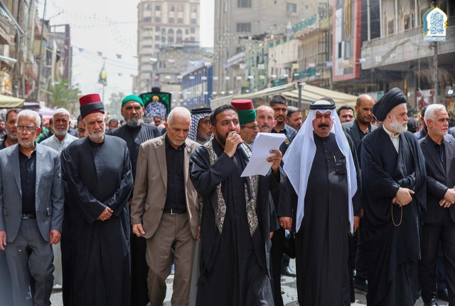 حيث انطلقت الحشود المؤمنة المُوالية من شارع باب المراد وصولاً إلى الصحن الكاظمي الشريف، يتقدمهم خادم الإمامين الكاظمين الجوادين، الدكتور حيدر حسن الشمّري، إلى جانب حضور مواكب مدينة الكاظمية المقدسة وهيئاتها الحُسينية، وخدام العتبة المقدسة، وجمع من الزائرين الكرام الذين توافدوا لإحياء هذه المناسبة الأليمة، وسط هتافات الولاء لصاحب الذكرى الأليمة معبّرين عن عظيم حزنهم ومواساتهم للنبي الأكرم "صلى الله عليه وآله وسلم" وآل بيته الأطهار "عليهم السلام" بهذا المصاب الجلل.