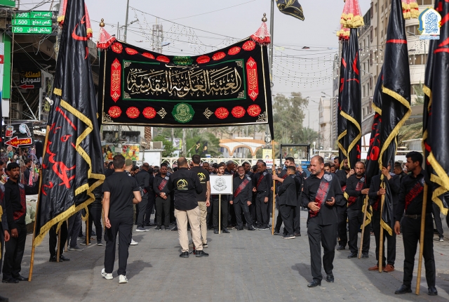 نظّم موكب خدّام أمير المؤمنين في العتبة العلوية المقدسة مسيرة عزائية لإحياءً لذكرى استشهاد صاحب البراهين الواضحات الإمام جعفر الصادق "عليه السلام" وكان في استقبال المعزّين ومشاركتهم بهذه المناسبة الأليمة خدّام العتبة الكاظمية المقدسة.