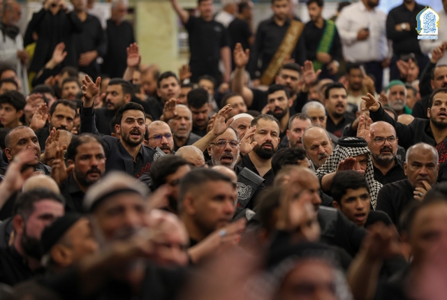 بعدها تجمهرت الحشود المعزية من الخدم وأقامت مجلساً تأبينياً في رحاب رواق سيدنا عبد الله بن عبد المطلب "عليه السلام" بالصحن الكاظمي الشريف حيث خيمت أجواء الحزن والأسى بهذا المصاب الجلل والرزء العظيم.