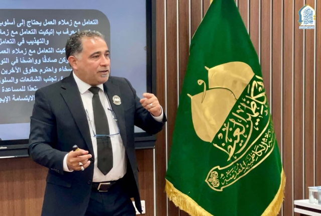 وشهدت الدورة، التي قدّمها المدرب علاء سعدي، طرحاً لمجموعة من المحاور المهمة التي تناولت مهارات الاتيكيت في بيئة العمل، وأسس التواصل الفعّال بين الموظفين، وآداب التعامل الوظيفي، والتأكيد على أهمية هذه المهارات في بناء بيئة عمل إيجابية، وتحقيق الانسجام الوظيفي، لما لها من تأثير مباشر في تحسين الأداء وتعزيز الصورة المؤسسية للعتبة الكاظمية المقدسة.