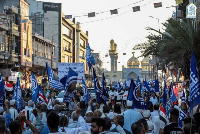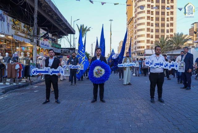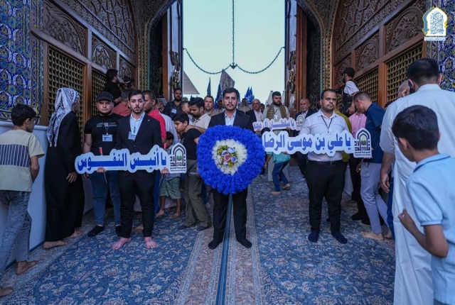 مع بزوغِ فجرِ يومِ الحادي عشر من شهر ذي القعدة تتوارى الشمس حياءً وخجلاً لولادة شمس الشموس وأنيس النفوس، الذي تشرّفت بمرقده أرض طوس الإمام علي بن موسى الرضا "عليه السلام"، وابتهاجاً بهذه المناسبة المباركة استضافت الأمانة العامة للعتبة الكاظمية المقدسة الحفل الذي نظّمه تجمع بغداد الحسيني، والمُقام ضمن فعاليات الأسبوع الرضوي بعنوان: (أسبوع ضياء الرضا علي "عليه السلام" ونور المعصومة فاطمة "عليها السلام")، إذ توافدوا بمسيرة ولائية من شارع باب المراد صوب الصحن الكاظمي الشريف، مرددين أهازيج الفرح بهذه المناسبة المباركة.