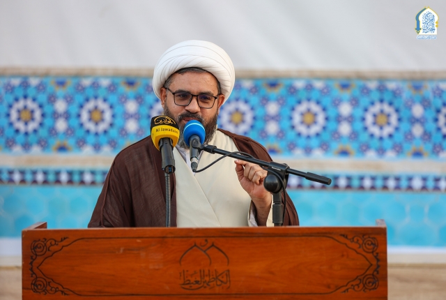 وتابع الشيخ الكاظمي قائلاً: وهل هناك مناسبةٌ أعظم من هذه المناسبة التي ترتبط بالعقيدة الإسلامية، وتعنى بالحفاظ على تعاليم الشريعة المقدسة بعد رحيل النبي "صلى الله عليه وآله وسلّم" بما لا يخفى على أحد من المسلمين وغيرهم تلك العلاقة الوثيقة التي لا تفترق بين النبوة والإمامة، وما كان يبذله النبي "صلى الله عليه وآله وسلّم" من جهودٍ كبيرة طيلة حياته الشريفة في بيان ذلك للمسلمين كما أمره الله تعالى فكان "صلى الله عليه وآله وسلّم" يؤكد في مناسبات كثيرة ولاية الإمام علي "عليه السلام" للأمة وبيان فضله ومقامه وعدم مساواة غيره له بذلك وأنه مقياس معرفة الحق فهو مع الحق والحق معه يدور حيثما دار فلا يفترق أحدهما عن الآخر أبداً.