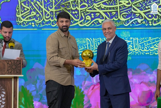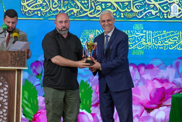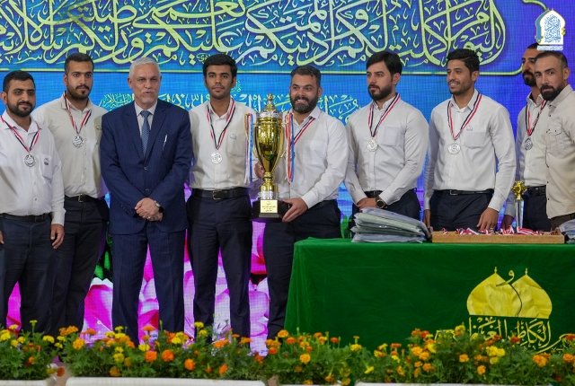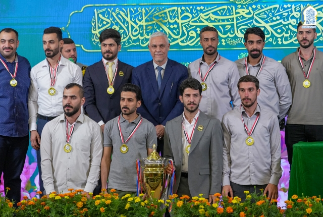 كما نكرم الفائزين ببطولة شباب الأئمة عليه السلام الرابعة لكرة القدم والتي تبارت فيه فرق الأقسام والشعب في العتبة المقدسة والغاية منها بث روح النشاط في نفوس أبنائنا الخدم ورفع لياقتهم البدنية من جهة.. والترويح عنهم بإيجاد أجواء بعيدة عن ضغوطات العمل والروتين الوظيفي.