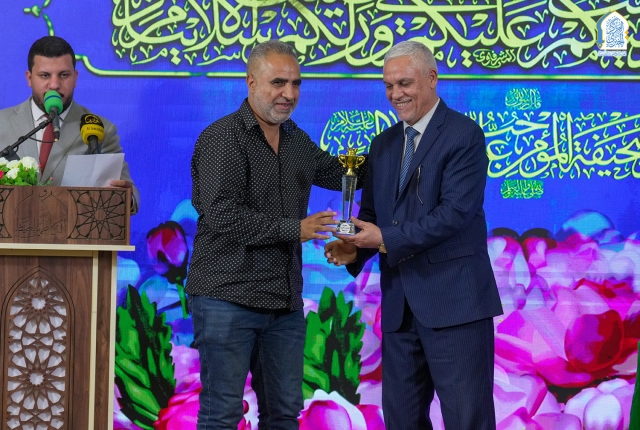 احتفاءً بعيد الأعياد الغدير الأغر، أقامت الأمانة العامة للعتبة الكاظمية المقدسة حفلاً تكريمياً بهيجاً في رحاب الصحن الكاظمي الشريف، كرّمت خلاله الفائزين من البنين والبنات في مسابقة "عميد الصادقين" التي نظّمها قسم الشؤون الفكرية والثقافية في العتبة المقدسة، فضلاً عن تكريم الخَدم المشاركين في بطولة شباب الأئمة الكروية الرابعة، وذلك ضمن فعاليات أسبوع الولاية بموسمه الثالث.