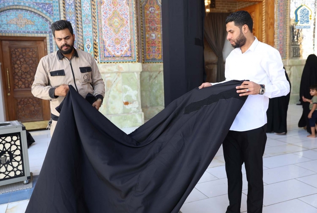ها هو شهر محرم الحرام يطلّ علينا لنستقبله بمظاهر الحزن والأسى، وفيه يوم عاشوراء الأليمة، ذكرى شهادة أبي الأحرار الإمام الحسين "عليه السلام" وأهل بيته وأصحابه الأوفياء تلك الفاجعة العظيمة التي أبكت ملائكة السماء وما زالت تدمع لها قلوب المؤمنين من أتباع أهل البيت "عليهم السلام" في مشارق الأرض ومغاربها، حيث اتَّشحت رحاب الصحن الكاظمي الشريف بمظاهر الحزن والأسى إيذاناً للعزاء واستقبال مناسبة عاشوراء، إذ تم نشر السواد والكلمات النورانية في الحرم الشريف وعلى أعمدة الطارمات والأواوين للحرم المطهر.