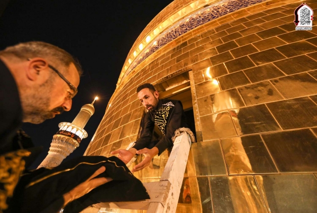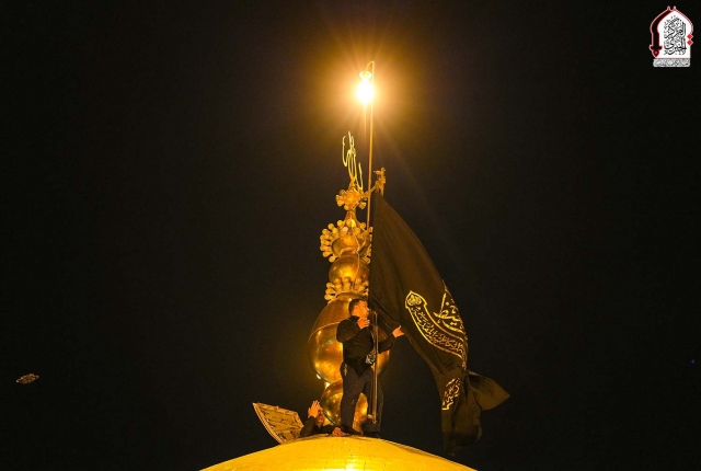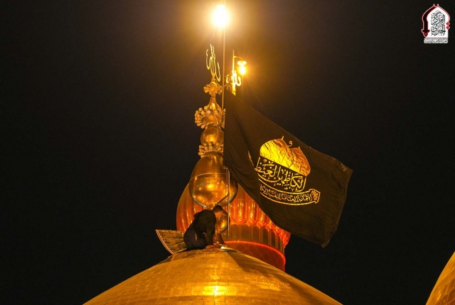 واستعداداً لبدء موسم الحزن والعزاء في ذكرى استشهاد أبي الأحرار الإمام الحسين وأهل بيته الأطهار وأصحابه الأفياء "عليهم السلام"، شهدت رحاب الصحن الكاظمي الشريف إقامة المراسم السنوية المهيبة لاستبدال رايتي قبتي الإمامين الكاظمين الجوادين "عليهما السلام" برايتي الحزن السوداء تزامناً مع رفعها فوق قباب العتبات المقدسة العلوية والحسينية والعباسية والمزارات الشريفة في عموم البلاد، بحضور العديد من الشخصيات الدينية والاجتماعية، ومشاركة حاشدة من أهالي مدينة الكاظمية المقدسة، في مشهدٍ يفيض حزناً وولاءً لنهج الحسين "عليه السلام".