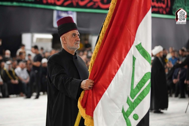 وفاءً لوريث الرسالة الأمانة العامة للعتبة الكاظمية المقدسة تُقيم مراسم استبدال الرايتين إلى السوداويتين إيذاناً بقدوم شهر محرم الحرام