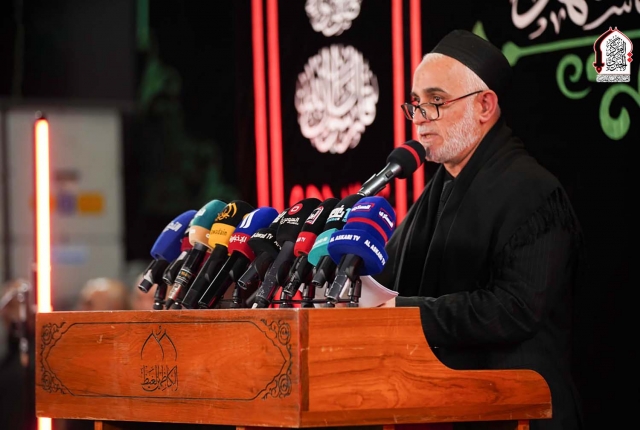 وأكد في كلمته: إنّ الأمانةَ العامة للعتبة المقدسة الكاظمية وهي تحتضنُ هذه الشعائر الحسينية العظيمة تنظرُ إلى هذا اليوم لا بوصفهِ عملاً تقليديًّا، بل هو موقف عقائدي يعبّرُ عن عمقِ الانتماءِ إلى مدرسةِ النبي واله الاطهار مدرسة الإمام الحسين "عليه السلام" الخالدة، ونؤكدُ أنّ رايةَ الثباتِ على المبادئِ الحسينية، ستبقى خفاقةً ما دامتِ الأرواحُ تلهجُ بالولاء، والقلوبُ تنبضُ بالإيمان.. معلنةً أنَّ النداءَ الحسينيّ ما زالَ يتردّدُ في قلوب وضمائرِ الأحرار (هَل مِن ناصِرٍ يَنصُرُني)؟..