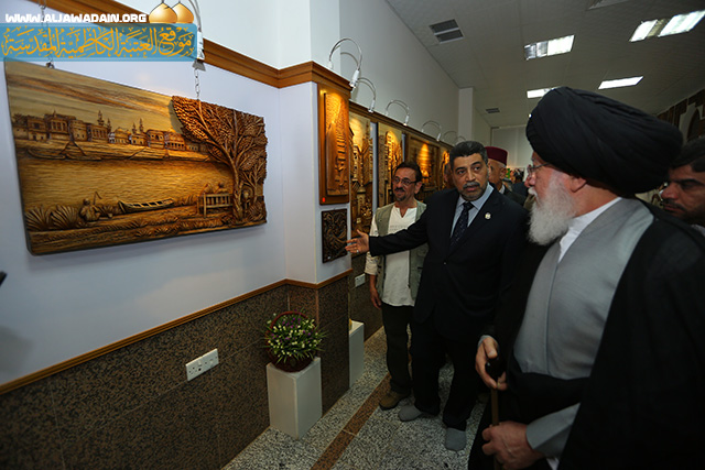 كما زار سماحته قاعة شعبة النقش والزخرفة التابعة لقسم الشؤون الخدمية واستمع الى شرح مفصل من مدير الشعبة الاستاذ (إبراهيم النقاش)عن الاعمال الفنية التي تنم عن أصالة مدينة الكاظمية المقدسة والإرث الحضاري التي تتمتع به هذه المدينة من الناحية الأثرية والعمرانية والحضارية وبعد أن تجول سماحته في أروقة القاعتين, أبدى اعجابه وارتياحه بالاعمال الفنية والجهود المبذولة من قبل منتسبي العتبة المقدسة لإظهار هذه النشاطات الثقافية بالمظهر اللائق الذي يعكس الصورة المثلى لنشر ثقافة هذا الفن الإسلامي كما أشاد سماحته بهذا المشاريع المباركة متمنياً للجميع التوفيق والسداد وقبول الأعمال.