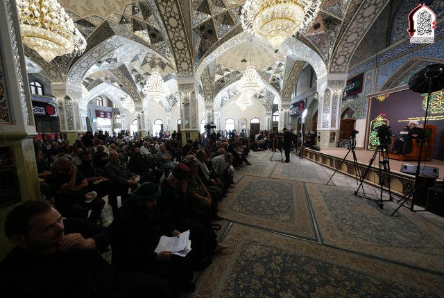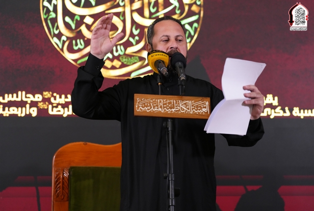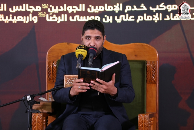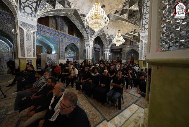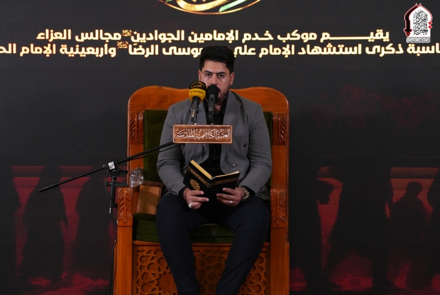 خفقت رايات الحزن من جديد لتتقد معها نيران الأسى واللوعة في قلوب الموالين لذكرى استشهاد نبراس أهل بيت النبوة "عليهم السلام" الإمام الثامن علي بن موسى الرضا "عليه السلام"، وإحياءً لهذه المناسبة الأليمة التي تتزامن مع موسم أربعينية الإمام الحسين "عليه السلام، أقام موكب خدّام الإمامين الجوادين ضمن منهاجه الديني والثقافي في رواق سيدنا عبد الله بن عبد المطلب "عليه السلام" مجلساً عزائيا خاصاً بمشاركة كل من: فضيلة الشيخ منير الكاظمي، وفضيلة الشيخ قاسم الخفاجي، وفضيلة الشيخ ليث العبيدي، الذين أفاضوا في بحثهم حول السيرة المباركة للإمام الرضا "عليه السلام" التي خرجت من ربوع المدينة الطيبة دار هجرة النبي المصطفى "صلى الله عليه وآله"، وانطباعات شخصية عالِم آل محمد "عليه السلام" ودوره الريادي في حفظ التراث الإسلامي.