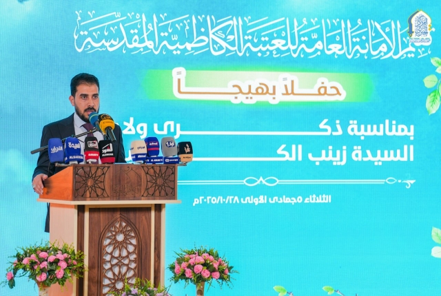 وإنَّ العتبةَ الكاظميّةَ المُقدَّسةَ، وهي تُحيي هذه الذِّكرى العَطرةَ، تَستلهمُ من نَهجِ العَقيلةِ زينبَ "عليها السَّلام" روحَ العطاءِ والتَّضحيةِ، وتُؤكِّدُ استمرارَها في خدمةِ الدِّينِ والمجتمعِ، عَبرَ مَشاريعِها العلميّةِ والثقافيّةِ والاجتماعيّةِ الّتي تُعبِّرُ عن رسالةِ الأئمّةِ الأطهارِ "عليهمُ السَّلام" في بناءِ الإنسانِ وإحياءِ القِيَمِ.. إذ عَلَّمَتْنا "عليها السَّلام" أنَّ الكلمةَ المُخلِصَةَ يُمكنُ أنْ تُغيِّرَ مَجرى التَّاريخِ، فقد واجهتِ الظُّلمَ بالبَيانِ، والبَاطلَ بالحُجَّةِ، فَلْنَستفِدْ من هذا الدَّرسِ في تَعزيزِ خِطابِنا الإسلاميِّ المُعتدِلِ الّذي يقومُ على الحِكمةِ والموعظةِ الحَسنةِ، ويُحافِظُ على وَحدةِ الأُمّةِ وكَرامتِها).