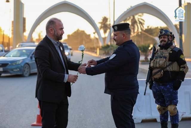ابتهاجاً بذكرى ولادة الإمام محمد بن علي الجواد "عليه السلام"، وضمن فعاليات برنامج "نسائم الجواد الثقافي"، قام خَدَمةُ العتبة الكاظمية المقدسة بتوزيع الزهور على المواطنين والقوات الأمنية المتواجدة في مدينة الكاظمية المقدسة، تعبيراً عن مشاعر الفرح والولاء بهذه المناسبة العطرة.