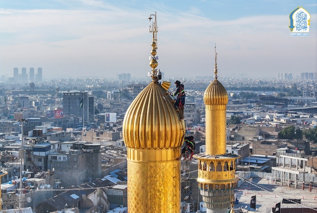 أعمال التنظيف والجلي تشهدها مآذن وقبتا حرم الإمامين الكاظمين "عليهما السلام"