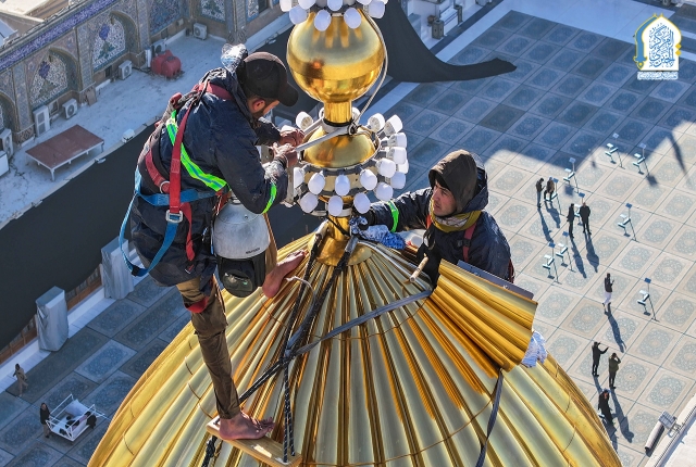 وتأتي هذه الجهود ضمن إطار العناية المستمرة بالمعالم المعمارية للحرم الشريف، وإظهارها بأجمل وأبهى حلّة تليق بقدسية صاحبي المرقدين الشريفين "عليهما السلام"، وبما ينسجم مع المكانة الدينية والرونق الحضاري والبهاء العمراني الذي يتميز به هذا الصرح الإسلامي الكبير، لاسيما في ظل الاستعدادات المكثفة لاستقبال جموع الزائرين الكرام.