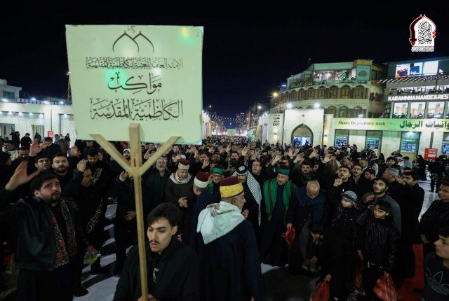 خّدام العتبة الكاظمية المقدسة يرفعون رايتَيْ الحُزن والصبر وسط ذرف الدموع وتعالي الهتافات (لبيك يا موسى الكاظم)