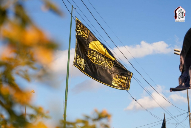 رفع راية الإمام كاظم الغيظ "عليه السلام" في مدينة الشعلة إيذانًا بإعلان العزاء
