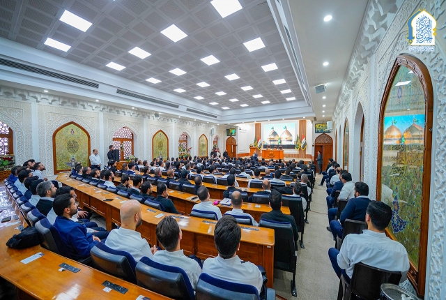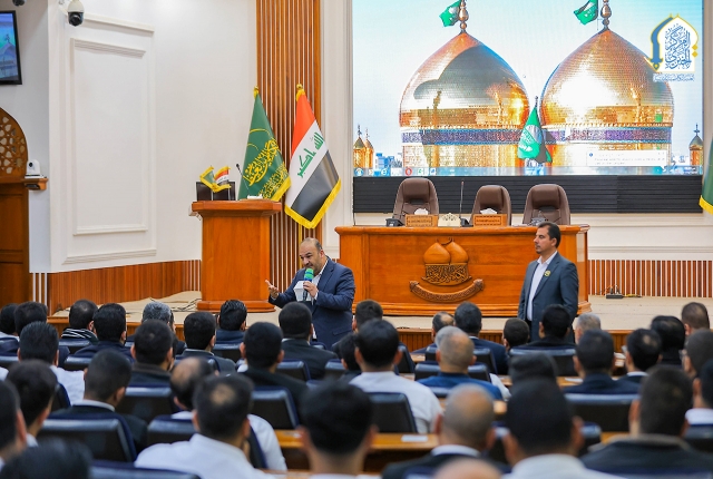 حيث دار الحديث في فُلك شرف الخدمة في العتبة المقدسة، وما يمثله هذا المكان الطاهر من مسؤولية عظيمة تستوجب الإخلاص والالتزام في أداء الواجبات، مؤكداً في حديثه قائلاً: (يتجدد عهدنا إن شاء الله تعالى باللقاء معكم ونحن في رحاب الكاظمين الجوادين "عليهما السلام" للتهيؤ والاستعداد لتنفيذ الخطة الخدمية الخاصة لاستقبال الزائرين الوافدين في شهر رمضان المبارك، فمن الواضح أن نفحات المولى عزّ وجل على الإنسان لا تأتي بصورة مستمرة لذا يجب اغتنام هذه النِعم، فوجودنا في هذا المكان المقدس من حيث العقيدة هو نفحة إلهية، تستوجب التشرّف بها والاستظلال ببركاتها).