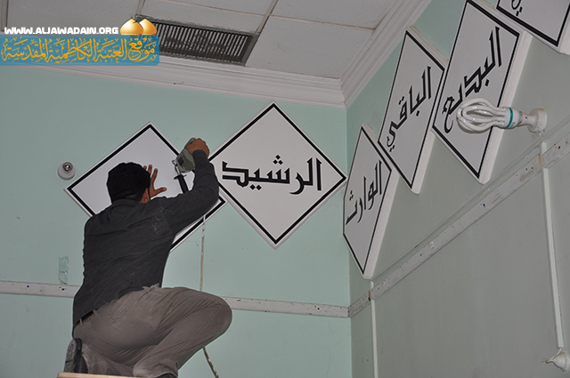 تزيين جدران حسينية الصدر باسماء الله الحسنى