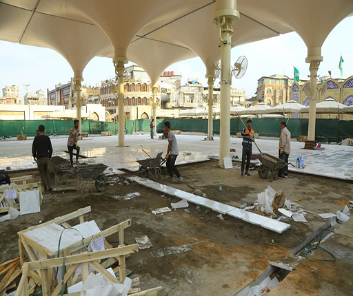 وعن هذه الجهود تحدّث لموقع العتبة الإلكتروني المشرف على أعمال المشروع المهندس محمد صفاء قائلاً: إن الأعمال تجري ضمن مراحل متقدّمة، وتسير بوتيرة متصاعدة بعد الانتهاء من مشاريع البنى التحتية التي تخدم المنطقة بالخدمات الكهربائية والميكانيكية، وصب الأرضيات، ونصب المظلات ومناهل المياه (RO) الصالحة للشرب، شرعت الملاكات الفنية بأعمال إكساء أرضية صحن باب المراد بالمرمر وفق تصاميم معمارية، وجداول زمنية وخطة عمل دؤوبة تضمن عدم التأثير على حركة زائري الإمامين الكاظمين "عليهما السلام" بالعمل الجاري.