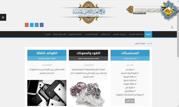 موقع العتبة الكاظمية المقدسة يطلق قسم المفقودات