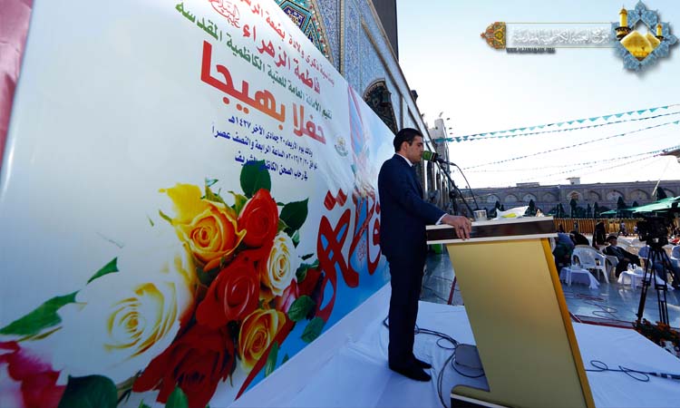 إحياءً لذكرى ولادة السيدة الصديقة الطاهرة, مكنون الكمالات، وخزين الفضائل والمكارم والحسنات، ورمز العفاف والشجاعة والبلاغة وقوة الجنان، ومثال الزهد والورع والعلم والشهامة, هذه الولادة العطرة التي ملأت سماء الإسلام بالفرح والسرور والغبطة، أقامت الأمانة العامة للعتبة الكاظمية المقدسة في رحاب الصحن الكاظمي الشريف حفلاً بهيجاً بهذه الذكرى الميمونة عصر الأربعاء 30 آذار 2016، بحضور الأمين العام للعتبة الكاظمية المقدسة أ .د. جمال عبد الرسول الدباغ وعدد من الشخصيات الدينية والاجتماعية وجمع غفير من زائري الإمامين الجوادين "عليهما السلام"، حيث استهل الحفل بتلاوة آيات مباركة من كتاب الله العزيز عطر بها قارئ العتبة السيد عمار الموسوي أسماع الحاضرين، تلتها كلمة الأمانة العامة للعتبة الكاظمية المقدسة ألقاها أمينها العام أ. د جمال الدباغ بين فيها قائلاً: ( عندما تطل علينا هذه الذكرى العزيزة على قلوب المؤمنين فإنها عادةً تبعث السرور في نفوسهم بهذه المناسبة الكريمة، ولكن الأهم من ذلك كله هو بعثُ السرور في قلب صاحبة الذكرى وذلك من خلال التمسك بنهجها وأخلاقها والتأسي بعفتها وحجابها والاقتداء بشجاعتها التي جعلتها من المدافعات عن الدين والعقيدة منذ شروق الرسالة الإسلامية وبعثة أبيها النبي الأعظم محمد "صلى الله عليه وآله" وحتى أواخر أيام حياتها.. وهذا يلقي على عاتق نسائنا مسؤولية جمة في رفع زخم المعركة ضد الدواعش وبث العزيمة في الأبن والأخ والأب والزوج التزاماً منها بفتوى الجهاد الكفائي التي أطلقتها المرجعية الدينية العليا المتمثلة بسماحة آية الله العظمى السيد علي الحسيني السيستاني "دام ظله الوارف" دفاعاً عن العراق والمقدسات). بعدها ارتقى المنصة فضيلة الشيخ منير الكاظمي ليتحفنا بمحاضرة دينية قيّمة استعرض فيها قبسات من شخصية السيدة الزهراء وسيرتها المباركة مبيناً أن ولادتها تكريماً للمرأة بشكل عام وللمرأة المسلمة بشكل خاص، حيث وجدت في كل مرحلة من مراحل عمرها الشريف انموذجاً حياً حيث درجت في مدارج الكمال حتى وصلت إلى الرفعة والسمو وكنّاها رسول الله"صلى الله عليه وآله": بـ (أم أبيها)، إذ كسرت الطوق لتخطّ لنا منهجاً قويماً في سلوكها الفكري والحضاري عندما أرادات ان تنتصر لحقها .