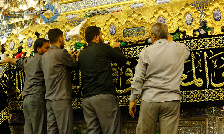مع حلول ذكرى استشهاد سابع أئمة الهدى المعذب في قعر السجون وظُلم المطامير الذي قهر بعزمه جور الجائرين وسحق بصبره قيود الظالمين، ووسط أجواء إيمانية حضرها الأمين العام للعتبة الكاظمية المقدسة أ. د. جمال عبد الرسول الدباغ، شهد الضريح المقدس للإمامين الكاظمين "عليهما السلام" تعليق الأوشحة ونشر السواد، وقد قامت بتلك الأعمال وحدة الحرم ووحدة الخياطة والتطريز تزامناً مع إعلان مظاهر الحِداد وإقامة مراسم إبدال رايتي الإمامين الجوادين"عليهما السلام" برايتي السواد فوق القبتين الشريفتين التي ستشهدها العتبة الكاظمية المقدسة مساء يوم الجمعة21 رجب الأصب 1437هـ الموافق 29 نيسان 2016 .