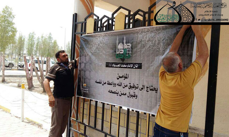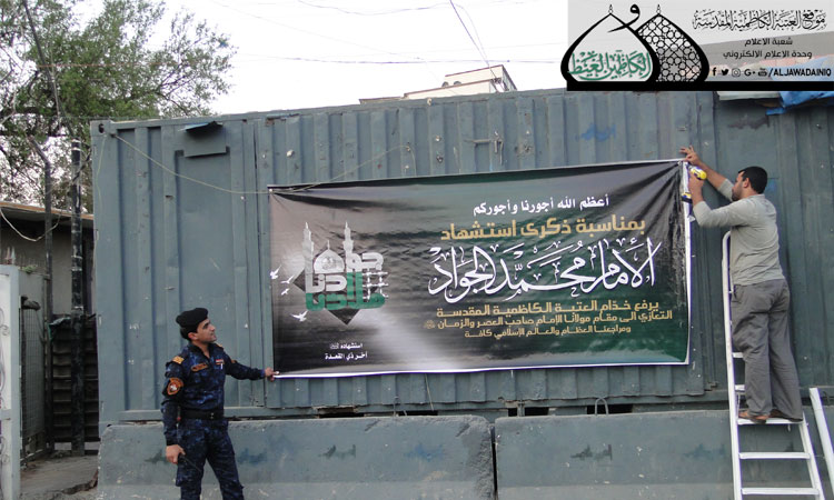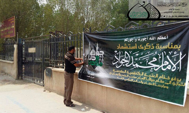 مع بدء التحضيرات لاستقبال ذكرى استشهاد تاسع الأئمة الإمام محمد الجواد "عليه السلام، وتحت شعار: جوادنا ملاذنا، قام خدام العتبة الكاظمية المقدسة في قسم العلاقات العامة، بنشر مظاهر الحزن والحداد وعبارات الترحيب بالزائرين الكرام داخل الصحن الكاظمي الشريف فضلاً عن نشر لافتات احتوت على أحاديث الإمام الجواد "عليه السلام" ووصاياه وأحاديث تحث على أهمية أداء الزيارة بدءً من محافظات العراق الجنوبية والفرات الأوسط وطرق الزائرين ومناطق بغداد ومدينة الكاظمية المقدسة. كما سيشهد الصحن الكاظمي الشريف إقامة مراسم استبدال رايتي قبتي الإمامين الجوادين "عليهما السلام"، مساء يوم الثلاثاء 26 ذي القعدة 1437هـ الموافق 30 آب 2016م.