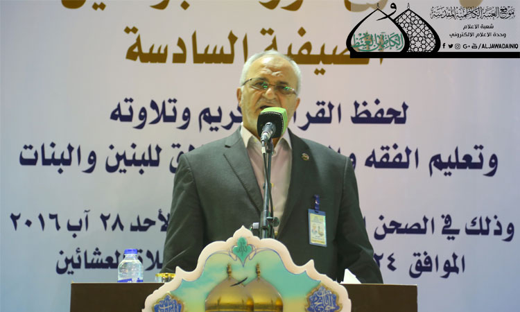 بعدها كلمة العتبة الكاظمية المقدسة وألقاها أمينها العام أ.د. جمال عبد الرسول الدباغ والتي رحب فيها بالحضور وقدم الشكر لكل من ساهم في إنجاح هذه الدورة وتوفير الأجواء القرآنية للطلبة المشاركين وأوصل الشكر إلى أولياء أمور الطلبة الذين حثوا أبنائهم للمشاركة في هذه الدورة القرآنية، كما أكد على ضرورة نشر ثقافة القرآن الكريم، والتمسك بالثقلين، والاهتمام بالمواهب القرآنية الناشئة، فضلاً عن تعلم أحكام الله والاهتمام بتعلم لغتنا العربية الفصحى السليمة التي بدأت تتلاشى يوماً بعد آخر. وكانت هناك كلمة لدار القرآن الكريم القاها المهندس جلال علي محمد بيّن خلالها قائلاً: دورة الجوادين "عليهما السلام" الصيفية السادسة احتضنت أبنائنا وبناتنا خلال العطلة الصيفية واستثماراً لأوقات فراغهم بما يعود عليهم بالنفع في الدنيا والآخرة، فقد انتظم في هذه الدورات (140) مشاركاً من كلا الجنسين. وأشار إلى ديمومتها خلال أيام السنة الدراسية يومي الجمعة السبت من كل أسبوع تعميماً للفائدة ومواصلة لهذا الغرس المبارك.