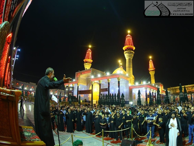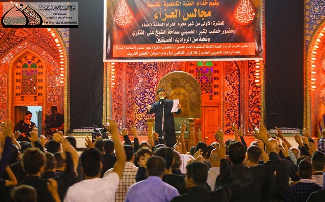 مواساة للرسول الكريم "صلى الله عليه وآله" وأهل بيته الأطهار "عليهم السلام" بالرزية الكبرى التي اهتز لها الضمير الإنساني في ملحمة الخلود العاشورائية، ذكرى استشهاد سيد شباب أهل الجنة الإمام الحسين "عليه السلام"، تتواصل الأمانة العامة للعتبة الكاظمية المقدسة بمنهاجها العزائي لإحياء الأيام العَشَرة الأولى من شهر محرم الحرام, حيث شهدت مجالس العزاء حضورا إيمانياً كبيراً من عشاق ومحبي أهل البيت "عليهم السلام" الذين توافدوا إلى الصحن الكاظمي الشريف لإحياء هذه الشعائر المقدسة وتجديد العهد لأبي الأحرار في المضي قدما على نهجه القويم واستماعهم إلى سلسلة المحاضرات الدينية والتوجيهات القيّمة التي يلقيها سماحة الشيخ الدكتور (علي الشكري), والتي تطرق فيها إلى أبعاد الثورة الحسينية و فكرالإمام الحسين "عليه السلام" وما تحمله من الحكمة البالغة والموعظة الرشيدة, كما استعرض في محاضراته فضائل أبي الفضل العباس بن أمير المؤمنين علي بن أبي طالب "عليهما السلام" ونبل صفاته، وصلابة موقفه، وسلوكه المُشرّف، وأثره في ميدان الحرب، ومواقفه البطولية يوم الطفّ مع الإمام الحسين "عليه السلام". وأعقب تلك المحاضرات مجالس للعزاء بمشاركة رواديد المنبر الحسيني في العتبة المقدسة بقصائدهم الرثائية والولاية لسبط الرسول الأكرم"صلى الله عليه وآله". واختتمت بالدعاء إلى مقاتلي الحشد الشعبي المُلبّين لنداء المرجعية الدينية العليا الذين افتدوا أنفسهم إزاء الوطن والمقدسات وبقاء الذكر الحسيني بالنصر والظفر وهم يخوضون معارك التحرير.