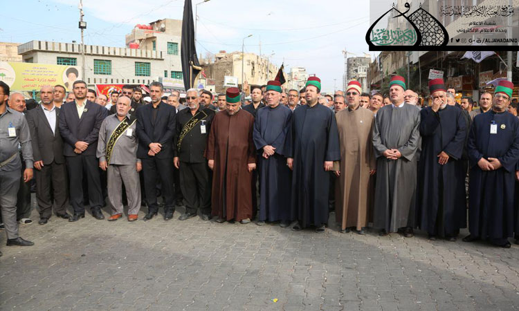 نَظَمَ خدام الإمامين الجوادين "عليهما السلام" مسيرة ولائية حاشدة بذكرى استشهاد ثاني أئمة الهدى، إمام المتقين وشفيع المؤمنين الامام الحسن الزكي "عليه السلام"، بحضور الأمين العام للعتبة الكاظمية المقدسة أ.د. جمال عبد الرسول الدباغ وعدد من أعضاء مجلس الإدارة، انطلقت المسيرة من حسينية آل الصدر متجهة إلى الحرم الكاظمي الشريف، صدحت حناجرالمشاركين بالردات التي عبرت عن الولاء المطلق للإمام الحسن المجتبى "عليه السلام" وسيرته الشريفة وفضائله وتضحياته ومصابه الجلل ثم اختتمت بمجلسٍ للعزاء والتأبين في رحاب الصحن الكاظمي .