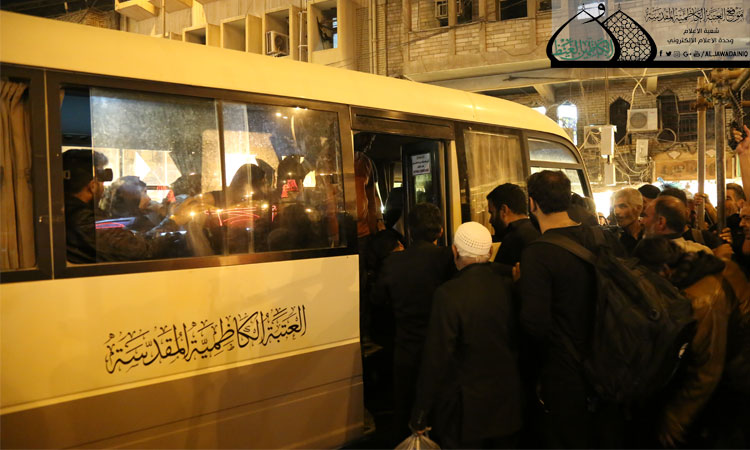 دأب قسم الآليات الذي أبدى العاملون فيه استعدادهم العالي على بذل كل الجهود لتسهيل دخول الزائرين إلى العتبة الكاظمية المقدسة ومغادرتهم والاهتمام الكامل بخدمتهم، وقد أعلن السيد محمد علي الجصاني رئيس قسم الآليات عن العمل بالخطة الموضوعة لموسم الأربعين قائلاً: تم البدء بخطة نقل الوفود الزائرة المرافقة لخطة المبيت والسكن من اليوم السادس لشهر صفر 1438هـ، وبإشراف ومتابعة لجنة إدارة الزيارة واستطعنا توفير باصات النقل التي تتناسب مع كثافة الأعداد الوافدة إلى مدينة الكاظمية حيث يتم نقل الزائرين بعد صلاتي العشائين من العتبة الكاظمية المقدسة إلى أماكن مبيت وإيواء الزائرين في داخل مدينة الكاظمية والمناطق المحيطة بها ذهاباً، والرجوع إليهم قبل صلاة الفجر وإعادتهم إلى الصحن الكاظمي الشريف، حيث تتم عملية النقل بواقع (180) حملة في اليوم الواحد، أي تفويج ما يقارب أكثر من (5400) زائر ذهاباً واياباً، فضلاً عن تهيئة عجلات متخصصة كسيارات الإسعاف والحمل والإنشائية والحوضيات ونقل المواد الغذائية والطعام والمستلزمات الأخرى إلى دور الضيافة وأماكن السكن، كما أن هناك (10) عجلات قد رافقت مشروع التبليغ الديني للحوزة العلمية الشريفة، ونحن مستمرون في أداء الخدمة نواصل الليل بالنهار، ونسأل الله أن يوفّق الجميع لهذه الخدمة المباركة.