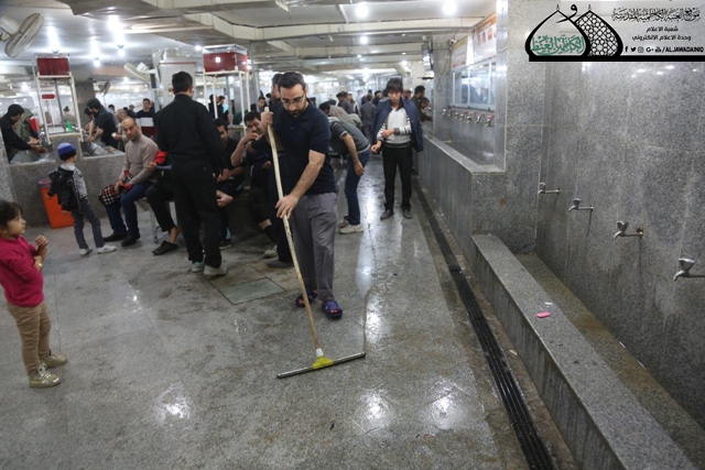 دون كَلَلٍ أو مللٍ تواصل ملاكات شعبة النظافة في العتبة الكاظمية المقدسة باستنفار جهودها وإنجاز أعمالها لأجل إدامة المكان الطاهر والحفاظ على نظافته وتوفير سبل الراحة للزائرين الكرام خلال موسم الأربعين، وبغية التعرّف على تلك النشاطات، تحدّث إلينا مسؤول شعبة النظافة السيد خضير عباس قائلاً: بدأنا بالخطة الخدمية والاستعدادات والتحضيرات منذ وقت مبكر حيث قامت فرق شعبة النظافة بتنظيف وإدامة دور الضيافة، وإقامة حملات تنظيف مجاري الصرف الصحي داخل الصحن الشريف وخارجه وتهيئة أكثر من (200) حاوية نفايات تم نشرها داخل العتبة المقدسة والشوارع المحيطة بها، كما رافقت تلك الأعمال جهود استثنائية خلال أيام الذروة للسيطرة على النظافة العامة داخل الحرم ومحيط الصحن الشريف وأماكن الضيافة وخيام إيواء الزائرين، والاهتمام بدورات المياه الصحية وتجهيزها بكميات كبيرة من المنظفات والمعقمات ورفع النفايات ونقلها إلى الأماكن المخصصة لها. فضلاً عن مجموعة من الأعمال تقوم بها ملاكاتنا بالتعاون والتنسيق مع الأقسام الأخرى لأجل إرجاع المواد والأجهزة والمفروشات وغيرها ونأمل من الباري العليّ القدير وببركة الإمامين الجوادين أن ننال شرف خدمة الزائرين الكرام.