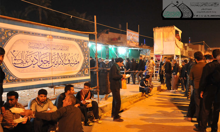 نالَ خدام الإمامين الجوادين "عليهما السلام" في قسم العلاقات العامة حظوة عظيمة من خلال تشرّفهم بخدمة الوافدين لموسم الأربعين، حيث وضعوا خطط عمل ورؤى جديدة دأبوا على استثمارها فكانوا على أهبة الاستعداد وكلٌ حسب موقعه لتقديم أفضل الخدمات للزائرين الكرام، حيث تركزت مهامّهم على نشر البوسترات داخل العتبة المقدسة والمداخل والشوارع الرئيسة المؤدية إليها، والتي تضمنت كلمات ترحيبية وعلامات دلالة وتوجيهات وإرشادات مهمة للزائرين تهدف إلى رفع الوعي الديني، وتعكس الصورة الحضارية للمناسبة.، وكذلك تهيئة المنبرالحسيني واستقبال المحاضرين لإقامة البرنامج العزائي اليومي في الصحن الكاظمي الشريف، والمساهمة في تفويج الزائرين إلى أماكن الإيواء والمبيت في دور ضيافة العتبة والمساجد والحسينيات وتوفير مسلزمات الضيافة ووجبات الطعام لهم، كما قام قسم العلاقات بمساعدة الزائرين ممن فقدوا جوازاتهم ومستمسكاتهم خلال الزيارة والتنسيق والتعاون مع الجهات ذات العلاقة، وهناك خدمات أخرى قدمها مضيف الإمامين الجوادين "عليهما السلام" وإعداد وجبات الطعام الموائد وسعيهم لتوفير أقصى درجات الراحة والخدمة للزائرين الكرام.
