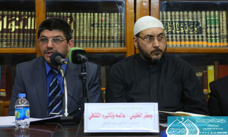 عقدت مكتبة الجوادين "عليهما السلام" العامة في الصحن الكاظمي الشريف الندوة الثقافية الشهرية الحادية والتسعين يوم الخميس 5 كانون الأول 2017 بعنوان: (جعفر الخليلي .. عالَمُه وتأثيرهُ الثقافي)، بحضور الأمين العام للعتبة الكاظمية المقدسة أ.د. جمال عبد الرسول الدباغ وعدد من أعضاء مجلس الإدارة والعديد من الشخصيات الدينية والعلمية والثقافية والأكاديمية. استهلت الندوة بتلاوة مباركة من كتاب الله العزيز، بعدها استعرض الباحث الدكتور ماهر الخليلي، محطات مضيئة من حياة الأديب والقاص جعفر الخليلي، منذ نشأته في مدينة النجف الأشرف وتأثير شخصية والده الأدبية والعلمية عليه، وشهرته في عالم الصحافة والأدب والشعر والنثر والتاريخ، حيث كان "رائد القصّة القصيرة في العراق". كما تطرّق الباحث إلى مقتطفات بارزة من كتابات الخليلي ومؤلفاته المتنوعة ومقالاته في مجلته " الهاتف " وتأثيره الثقافي والاجتماعي والسياسي ودوره الكبير في إصلاح المجتمع وتربيته تربية علمية وثقافية وأخلاقية. واستعرض أهمّ مؤلفات الخليلي منها: موسوعة العتبات المقدسة، والتمور العراقية قديماً وحديثاً، وروايته (حبوب الاستقلال)، وسلسلة من تراجم القصصية بعنوان "هكذا عرفتهم". وعرّج الباحث في ختامها إلى كتابات الأدباء والشعراء والمبدعين ممن كتبوا وأنصفوا الخليلي في حياته وبعد مماته، ومنهم الأديب وديع الفلسطيني، والكاتب المصري محمد عبد الغني، وميخائيل نعيمة، والأستاذ مشكور الأسدي، والأستاذ مير بصري، والشيخ جلال الحنفي، والشيخ الدكتور أحمد الوائلي وصفاء خلّوصي وغيرهم. هذا وقد شهدت فقرات الجلسة مداخلات من قبل السادة الحاضرين أثرَت الندوة الثقافية من حيث الطرحُ والحِوار.