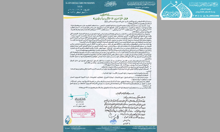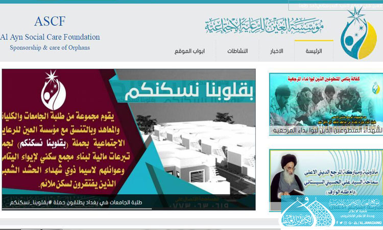 تُعلن مؤسسة العين، للرعاية الاجتماعية، بفسح المجال للمشاركة والتبرع لأجل استكمال مشروع الإمام الجواد "عليه السلام" السكني في بغداد، لإيواء عوائل الشهداء، حيث أطلقت مؤسسة العين حملتها الإعلامية عبر مواقع التواصل الاجتماعي وتُبيّن أن الفرصة متاحة أمام الجميع للمساهمة بشراء السهم الخيري في المشروع مقابل دفع مبلغ مقداره (25) ألف دينار عراقي، ويكون عبر التواصل مع مقر المؤسسة أو زيارة مقرها الرئيس في مدينة الكاظمية المقدسة