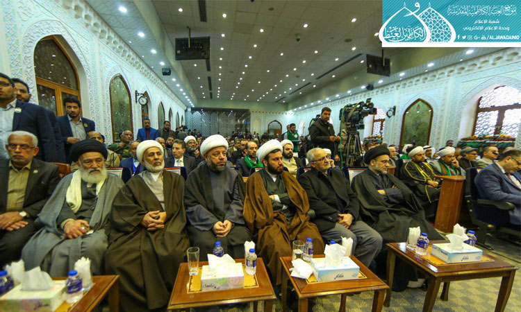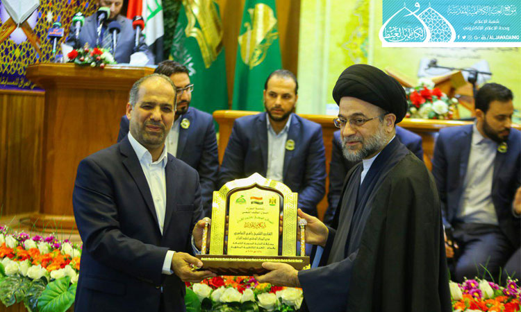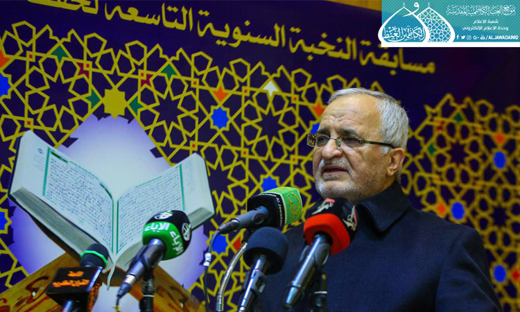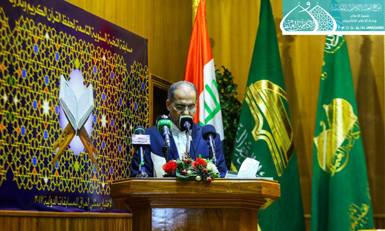 ثم ألقى الأمين العام للعتبة الكاظمية المقدسة كلمة بهذه المناسبة المباركة قائلاً: من دواعي السرور أن نلتقي في هذا المكان المبارك رحاب الإمامين الجوادين "عليهما السلام"، وأكد أن العترة هم عِدلُ القرآن، و كتاب الله هو دستور الحياة، وأضاف : (إلى جانب تعلمه فنحن بحاجة أيضاً إلى أن نجسد لغة القرآن الكريم في حياتنا، إذ إنها اليوم في خطر، ونحن مهددون بغزو ثقافي مستمر أوله هدم لغتنا، وكلنا يعلم إن المعجزة الخالدة للقرآن الكريم هي البلاغة والبيان الواردان فيه، فاللغة هي الهوية واذا كانت هذه الهوية في خطر فنحن كذلك في خطر فلا بد من الحفاظ عليها).. كما شهدت فعاليات المسابقة القرآنية مشاركة لفرقة إنشاد الجوادين، وتوزيع الدروع والهدايا على المؤسسات والجهات المنظمة لتلك المسابقة، واستُكملت فقراتها بالاستماع إلى التلاوات القرآنية المباركة من قبل المتسابقين المشاركين.