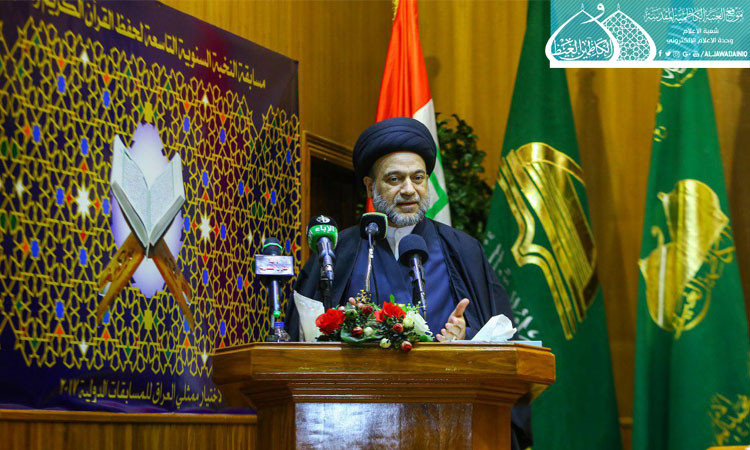 بعدها ألقى رئيس ديوان الوقف الشيعي سماحة السيد علاء الموسوي كلمة بهذه المناسبة بين فيها قائلاً: إن قاعدة التعليم في البلاد الإسلامية هو القرآن الكريم، فاليوم نجدها قد اختلفت في بلادنا وخصوصاً عند الفئات الناشئة، فكان من الضروري أن نجد برامجاً جديدة ونركز على حفظ وتلاوة القرآن الكريم وتعلم علومه من خلال إقامة الدورات المستمرة والمسابقات في المساجد والحسينيات والاهتمام بالمسابقات لسد نقص التعليم الجذري عند طلبتنا في الوقت الذي انصرفوا فيه بعيداً عن حفظ القرآن الكريم وتجويده، بل أصبح وللأسف الشديد "هواية" فلا بد من الرجوع للقرآن الكريم وبما أمرنا به رسول الله "صلى الله عليه وآله" في قوله: (إني تارك فيكم الثقلين : كتاب الله ، وعترتي أهل بيتي ، ما إن تمسكتم بهما لن تضلّوا بعدي أبدا).