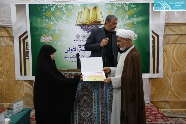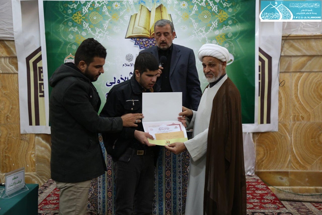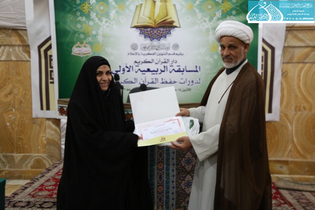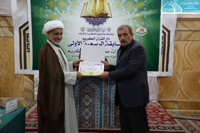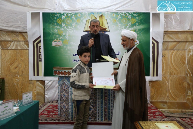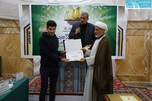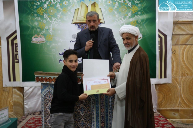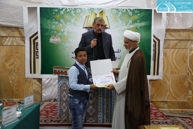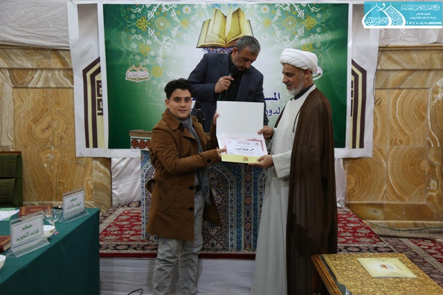 نهج واضح وخطوات مباركة للأمانة العامة للعتبة الكاظمية المقدسة, في دعمها ورعايتها للمسيرة القرآنية المباركة، وتنمية الوعي القرآني وتجذير تلك الثقافة لدى أبناء مجتمعنا الإسلامي واستثمارها أفضل استثمار والسعي إلى تنشئتهم نشأة إسلامية صحيحة تنسجم مع تعاليم ديننا الحنيف وأخلاق النبي الأكرم محمد "صلى الله عليه وآله" وأهل بيته الأطهار "عليهم السلام", نظمت الأمانة العامة للعتبة الكاظمية المقدسة/ قسم الشؤون الفكرية والإعلام ـ دار القرآن المسابقة الربيعية الأولى لدورات حفظ القرآن الكريم، حيث شارك فيها (39) متسابق من كلا الجنسين، وأعلنت نتائج المسابقة بالفوز في المراكز الأولى الثلاث لحفظ (خمسة أجزاء) من القرآن الكريم كل من المتسابق حسين سليم، وصدر الدين حسين، ورقية جعفر، وكذلك قد فاز بحفظ (ثلاثة أجزاء) المتسابقة مريم هادي، وبتول حيدر، وحسين علي، أما بحفظ (جزء واحد) فكان في المركز الأول دعاء جعفر، وجعفر ميثم، وتمارة صفاء. في الوقت ذاته تحدث إلينا مسؤول دار القرآن الكريم في العتبة الكاظمية المقدسة ورئيس اللجنة التحكيمية المهندس جلال علي محمد عن أجواء هذه المسابقة قائلاً: بدايةً نوجه شكرنا وتقدير إلى الأمانة العامة للعتبة الكاظمية المقدسة لرعايتها واهتمامها بنشاطات دار القرآن الكريم، وإن هذه المسابقة كان هدفها تشجيعي وليس الخروج بمراكز معيّنة بالرغم من أن التنافس مطلوب والسعي إلى إعدادهم وتشجيهم في المسابقات القادمة، حيث حَكّمَ في هذه المسابقة كلّ من : الأستاذ لؤي الطائي في جودة الحفظ والسيد عبد الكريم قاسم في قواعد التلاوة وكان الشيخ عباس المنشداوي في الصوت النغم والحافظة بتول جبار في الوقف والابتداء. واختتمت المسابقة بتوزيع الشهادات التقديرية والهدايا على اللجنة التحكيمية والفائزين من فيض بركات الإمامين الجوادين"عليهما السلام".