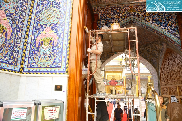 أعمال صيانة تشهدها باب المراد في العتبة الكاظمية المقدسة