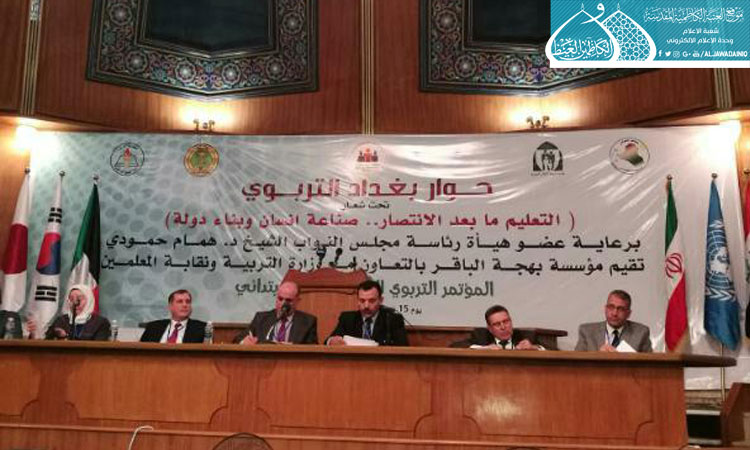 شارك وفد العتبة الكاظمية المقدسة برئاسة عضو مجلس الإدارة الأستاذ تحسين علي باقر في مؤتمر حوار بغداد التربوي الأول الذي انعقد السبت 15 نيسان 2017 تحت شعار: (التعليم ما بعد الانتصار .. صناعة إنسان وبناء دولة) بحضور شخصيات علمية واجتماعية وممثلي مؤسسات المجتمع المدني، وناقش المؤتمر تحديات التعليم الإبتدائي بإعتباره أساس كل المراحل التالية، وبلورة رؤى رصينة للمشاكل القائمة المتعلقة بالفلسفة التربوية، والمناهج والهوية الوطنية، والمباني المدرسية، ووضع المُعلم العراقي، وكل ما يسهم في النهوض بالواقع التربوي، فضلاً عن الإعلان عن إطلاق حملة وطنية وشعبية لدعم بناء المدارس وإعادة تأهيلها. وتجدر الإشارة أن الأمانة العامة للعتبة الكاظمية تواصل دعمها للمشاريع الإنسانية والمجالات التربوية والتعليمية التي تصب في خدمة مجتمعنا.
