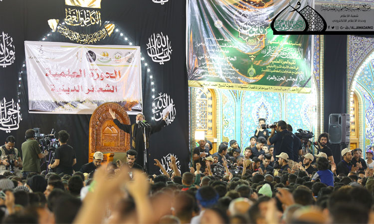 بمناسبة استشهاد وارث المتقين ابن الهداة الميامين الإمام موسى بن جعفر الكاظم " عليه السلام"، ووسط توافد الجموع الموالية الزائرة إلى حرم الإمامين الجوادين "عليهما السلام" لتقديم آيات الولاء والعزاء وإحياء هذه المصيبة الراتبة، أقيمت في رحاب الصحن الكاظمي الشريف مجالس العزاء والتأبين وفق البرنامج العزائي الخاص الذي أعدته الأمانة العامة للعتبة الكاظمية المقدسة الذي بدءً من يوم الخميس 22 رجب 1438 الموافق 20 نيسان 2017 والذي يستمر لمدة خمسة أيام حيث ارتقى المنبر الحسيني الشريف فضيلة الشيخ الدكتور أحمد الربيعي، ليتحف الحضور بمحاضرة دينية تمحورت حول وصايا باب الحوائج الإمام موسى الكاظم "عليه السلام" مبيناً خلالها مآثره العظيمة ومناقبه الربانية. كما أشار الشيخ الربيعي ببحثه إلى المفاهيم الأخلاقية التي يحتاجها مجتمعنا في هذه المرحلة الحرجة، مؤكداً على حث المؤمنين على ضرورة التحلِّي بأخلاقه "عليه السلام" وأن يتخذوا من سيرته الوضاءة منهجاً عملياً لبناء الذات والمجتمع. كما شارك في هذا البرنامج العزائي الرادود الحسيني الحاج باسم الكربلائي وإلقاء المراثي بهذه المناسبة. إذ شهد هذا البرنامج العزائي حضور الأمين العام للعتبة الكاظمية المقدسة أ.د. جمال عبد الرسول الدباغ وأعضاء مجلس الإدارة وممثل المرجعية الدينية في مدينة الكاظمية المقدسة سماحة الشيخ حسين آل ياسين وشخصيات اجتماعية وحشود من الزائرين والوافدين لمرقدي الإمامين الجوادين "عليهما السلام" في هذه المناسبة الأليمة.