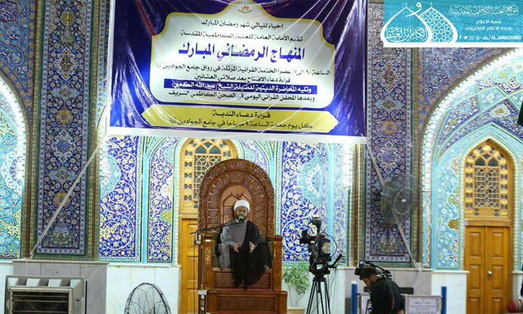 احياءً لليالي المباركة في شهر رمضان، ورعايتها للمجالس والمحافل القرآنية اليومية التي تستمر طيلة أيام شهر الخير والبركات, دأبت الأمانة العامة للعتبة الكاظمية المقدسة على إقامة مجالس الوعظ والإرشاد الديني في رحاب الصحن الكاظمي المقدس بمشاركة خطيب المنبر الحسيني فضيلة الشيخ عبد الله الكعبي بمحاضرات قيّمة تناول فيها دروساً أخلاقية وإرشادية وتوجيهية عن حرمة الشهر الفضيل شهر رمضان المبارك مستخلصة من فكر ونهج أهل البيت النبوة "عليهم السلام"، كما تضمنت محاضراته الأولى المحاور الإيمانية وتأثيرها على الفرد والمجتمع وضرورة استشعار روح التفاني والإخلاص ووجوب التأسي بخلق وآداب الإمامين الجوادين"عليهما السلام"، وجعلها السمة البارزة في التعامل مع أبناء المجتمع الإسلامي وبالخصوص ونحن نعيش أيام شهر الرحمة الإلهية، بحضور جموع المؤمنين من زائري الإمامين الجوادين"عليهما السلام".