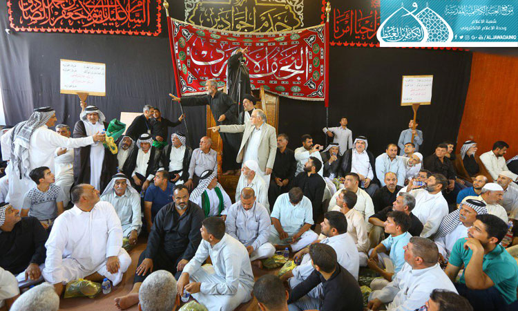 من مدينة أمير المؤمنين علي بن أبي طالب "عليه السلام", النجف الأشرف توافدت الحشود المؤمنة لإحياء ذكرى استشهاد عميد علوم الصادقين الإمام جعفر بن محمد "عليه السلام", ومواكبهم الحسينية المهيبة وهم يرفعون آيات الحزن والعزاء بهذه الذكرى الأليمة والمصاب الجلل إلى الإمامين الجوادين"عليهما السلام"، حيث أقاموا مجلس العزاء والتأبين في رحاب مسقف باب المراد، جددوا خلاله عهد الولاء والوفاء لإمامنا الصادق"عليه السلام" والسير على نهجه القويم. وكان في استقبال جموع المعزين في هذه المراسم العزائية خدام الإمامين الجوادين"عليهما السلام", وشرعوا في تقديم الضيافة والخدمة اللازمة لضيوف الإمامين الكاظمين "عليهما السلام" معبرين بذلك عن أواصر العلاقة الحميمة بين أبناء مدن العتبات المقدسة.
