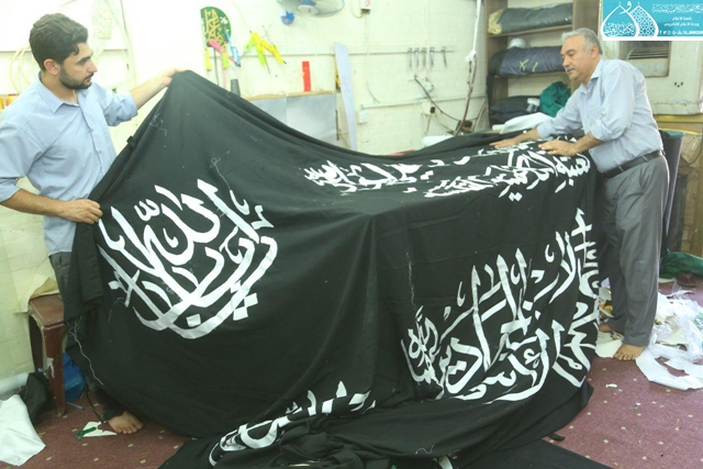 وحدة الخياطة والتطريز .. تنتهي من أعمال رايات الإمامين الجوادين "عليهما السلام" الخاصة بذكرى استشهاد الإمام الجواد "عليه السلام"