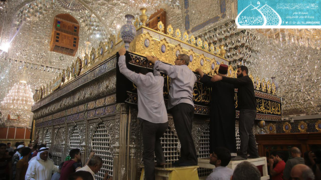 حري بالدنيا أن تتشح بالسواد لذكرى استشهاد سيد الشهداء الإمام الحسين "عليهم السلام"، نعم هكذا ينبغي أن نستقبل هذه المناسبة الأليمة ونحن نستذكر فاجعة أدمت قلوب محبي وأتباع أهل البيت "عليهم السلام" في مشارق الأرض ومغاربها، إذ اتَّشحت العتبة الكاظمية المقدسة بمظاهر الحزن والأسى ونشر السواد والكلمات النورانية على أعمدة الطارمات والأواوين في الصحن الكاظمي الشريف. كما سيشهد الصحن الكاظمي الشريف بإذنه تعالى في الساعة الثامنة والنصف بعد صلاتي العشائين يوم الخميس 29 ذي الحجة 1438هـ الموافق 21 أيلول 2017م المراسم السنوية لاستبدال رايتي قبتي الإمامين الجوادين"عليهما السلام" برايتي الحزن والأسى وذلك لتجديد العهد والولاء لأهل بيت النبوة "عليهم السلام"، فضلاً عن إتمام الاستعدادت والتحضيرات لاستقبال المواكب الحسينية وجموع الزائرين الوافدين إلى حرم الإمامين الجوادين "عليهما السلام" لتقديم آيات العزاء بهذا المصاب الجَلل.