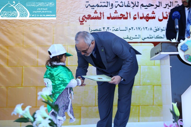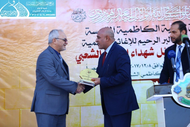 في الوقت ذاته قدّم مدير مؤسسة البَرّ الرّحيم للإغاثة والتنمية درعاً تذكارياً إلى الأمانة للعتبة الكاظمية المقدسة وذلك لدورها الإنساني والريادي المستمد قوته وعطائه من الإمامين الكاظمين "عليهما السلام" في متابعة عوائل الشهداء ورعاية شؤونهم.