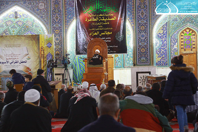 عمّ الحزن وتلبّدت السماء بغمام الأسى وضجّ الكون بالنحيب لذكرى استشهاد الحوراء الإنسية فاطمة الزهراء "عليها السلام", ومواساةً للنبي الأكرم وعترته الطاهرة "عليهم السلام" بهذا المصاب الجللّ الذي أفجع قلوب المؤمنين جميعاً، أقامت الأمانة العامة للعتبة الكاظمية المقدسة برنامجاً عزائياً إحياءً لهذه المناسبة الأليمة شهدته رحاب الصحن الكاظمي الشريف، بمشاركة خطيب المنبر الحسيني فضيلة الشيخ جعفر الوائلي الذي استعرض خلال أولى محاضراته الدينية قبسات من السيرة المباركة لسيدة نساء العالمين من الأولين والآخرين، ومكانتها عند الله تعالى "عز وجل" وعند رسوله الأكرم وأهل بيته الأطهار "عليهم السلام"، تلك الانموذج الحي والأسوة الحسنة للمرأة المسلمة.